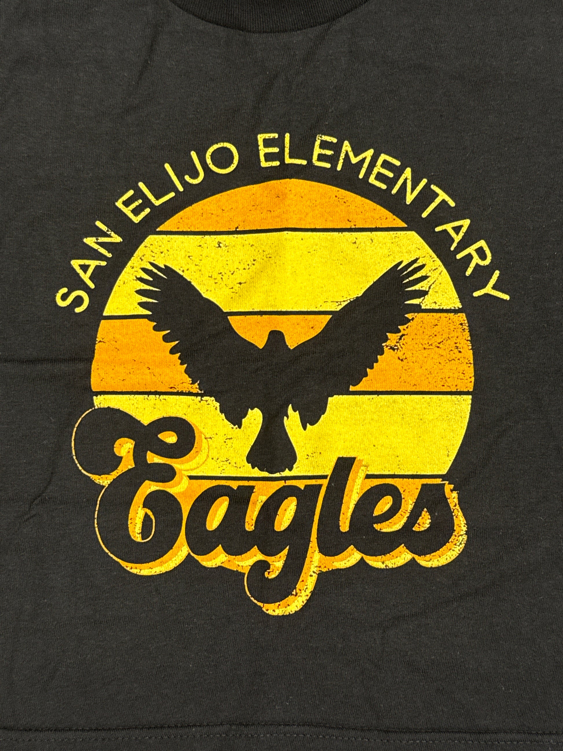 Show off your school spirit in vintage style with our San Elijo Elementary Eagles Retro Tee! Featuring a bold eagle silhouette against a sunset-inspired distressed background, this t-shirt blends classic comfort with timeless design. The soft, breathable fabric makes it perfect for school events, spirit days, or everyday wear.