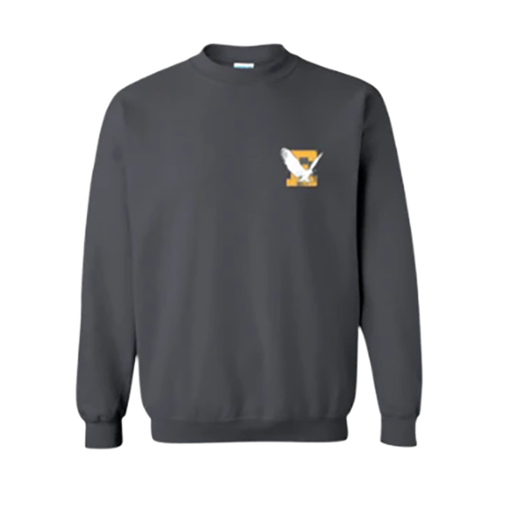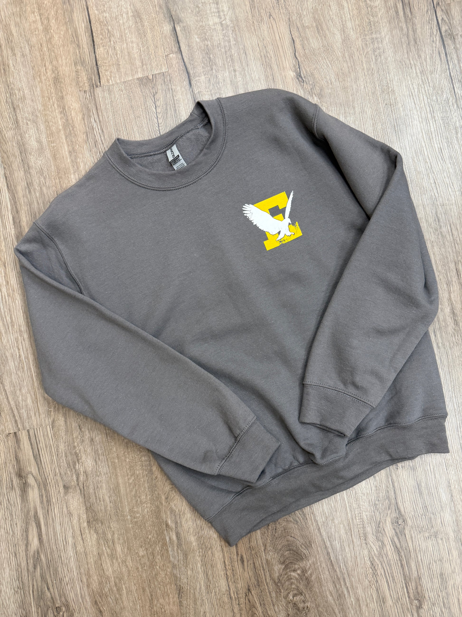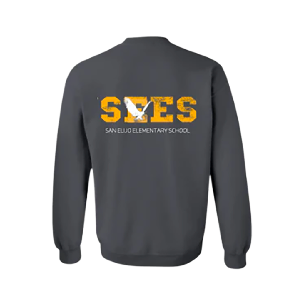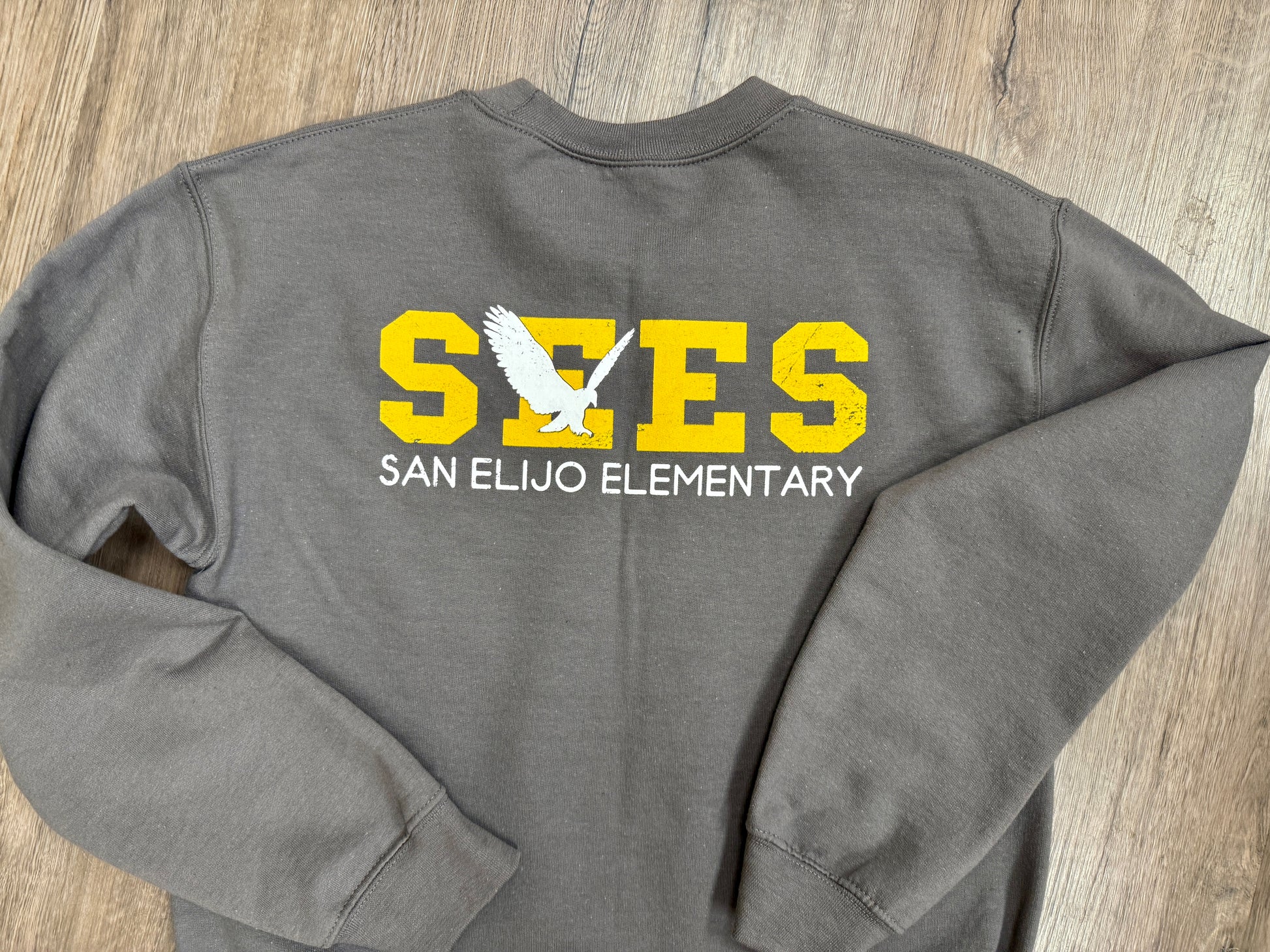 Grey pull-over sweatshirt with gold SEES logo on the back and a small eagle on the front.
