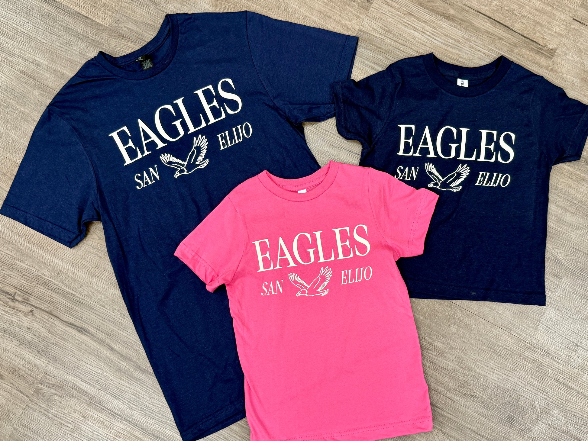 Show your Eagle spirit in comfort and style with this Adult San Elijo Eagles T-Shirt in classic navy. Whether you're cheering on the sidelines, chaperoning a field trip, or representing your school in the community, this tee is built to perform and impress.